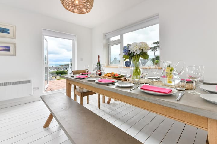 การออกแบบพื้นที่นั่งเล่นที่สว่างและเปิดโล่งสร้างพื้นที่สังสรรค์ที่ยอดเยี่ยมสำหรับเพื่อนและครอบครัว และบรรยากาศบ้านริมหาดร่วมสมัยทำให้คุณรู้สึกผ่อนคลายทันที ชั้นแรกมีครัวที่มีอุปกรณ์ครบครันพร้อมเครื่องใช้ไฟฟ้าที่ทันสมัย พื้นที่รับประทานอาหารที่กว้างขวางพร้อมที่นั่งแบบม้านั่ง และห้องนอนขนาดคิงไซส์พร้อมวิวที่น่าอิจฉาและห้องอาบน้ำในตัว พื้นที่ระเบียงส่วนตัวที่ยอดเยี่ยมที่มีราวบันไดกระจกและโซฟามุมขนาดใหญ่ช่วยให้คุณสามารถดูวิวที่งดงามทั้งชายฝั่งและชนบทได้อย่างเต็มที่ จะมีอะไรดีไปกว่าการใช้เวลายามเย็นของคุณไปกับการนั่งเล่นบนระเบียงเพลิดเพลินกับแก้วพิมส์เย็นๆ โดยใช้มินต์ที่เพิ่งเก็บมาจากสวนด้านหลังที่ปิดล้อมอยู่ในขณะที่ชมพระอาทิตย์ตกดินทั่วทั้งภูมิทัศน์ที่สวยงาม ชั้นล่างมีห้องนอนอีก 3 ห้อง (1 ห้องมีตัวเลือกการนอนที่ยืดหยุ่น) ห้องน้ำสำหรับครอบครัว และห้องอาบน้ำเพิ่มเติมที่นำไปสู่สวนที่หันหน้าไปทางทิศใต้ที่มีแสงแดดส่องถึง - สะดวกมากสำหรับล้างชุดยางดำน้ำและอุปกรณ์ชายหาดใต้ก๊อกน้ำด้านนอกก่อนจะเพลิดเพลินกับการอาบน้ำอุ่นภายในอาคาร ห้องเล่นเกมที่เข้าถึงได้จากสวนลานพร้อมสระว่ายน้ำ โต๊ะปิงปอง ลูกดอก ฯลฯ