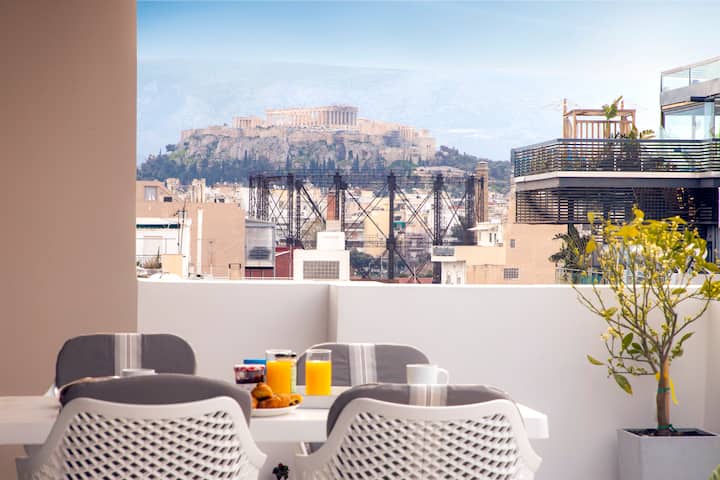 เพนท์เฮาส์วิวอะโครโพลิสสุดว้าวพร้อมสปากลางแจ้ง