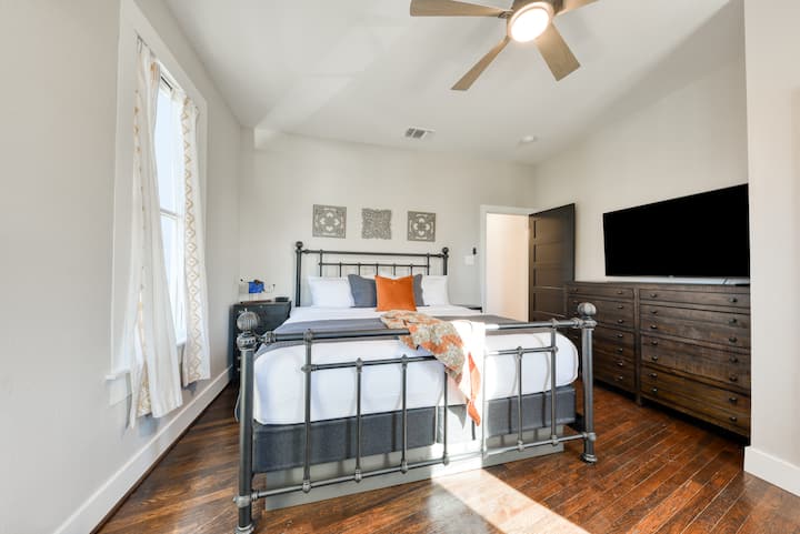 บ้านหลังนี้เป็นหนึ่งในที่พักที่มีชื่อเสียงที่สุดใน Lavaca ซึ่งเป็นอาคารเก่าแก่ของ Live Oak Grocery ที่สร้างขึ้นในปี 1915 บ้านที่ได้รับการปรับปรุงใหม่ทั้งหลังแห่งนี้ผสมผสานวัสดุทางประวัติศาสตร์เข้ากับความสวยงามทันสมัยโดยไม่สูญเสียเสน่ห์ดั้งเดิม หน้าต่างสไตล์ร้านค้าประวัติศาสตร์ขนาดใหญ่ช่วยให้แสงธรรมชาติเติมเต็มพื้นที่นั่งเล่นที่กว้างขวางสร้างบรรยากาศที่น่าดึงดูด ไม่ว่าจะเป็นผนังอิฐพื้นคอนกรีตเปื้อนคานสวยงามและเสาไซเปรสไปจนถึงเพดานสูงด้านบนเคาน์เตอร์ควอตซ์ขัดเงาและพื้นไม้เนื้อแข็งตกแต่งใหม่ที่สวยงามบ้านหลังนี้เป็นการผสมผสานที่ลงตัวของคุณลักษณะทางประวัติศาสตร์ดั้งเดิมพบกับการออกแบบอุตสาหกรรมสมัยใหม่ที่ทันสมัย ห้องครัวที่มีอุปกรณ์ครบครันได้รับการปรับปรุงทุกอย่างที่คุณต้องการเพื่อเตรียมอาหารค่ำที่น่าตื่นตาตื่นใจพร้อมกับเคาน์เตอร์ครัวที่กว้างขวางและพื้นที่รับประทานอาหารแยกต่างหากที่รองรับได้ 8 คน ที่ชั้น 1 คุณจะพบกับพื้นที่นั่งเล่น/ห้องรับประทานอาหารและห้องครัวแบบเปิดโล่งขนาดใหญ่รวมถึงห้องซักรีดและห้องสุขาพร้อมอ่างล้างหน้า ห้องนอนขนาดใหญ่พร้อมเตียงคิงไซส์และห้องน้ำเต็มรูปแบบในตัวพร้อมฝักบัวอาบน้ำแบบเดินเข้าได้ตั้งอยู่ด้านหลังห้องครัว สวนหลังบ้านที่อบอุ่นและเป็นส่วนตัวพร้อมเตาย่างบาร์บีคิวเป็นสถานที่ที่ดีเยี่ยมสำหรับความบันเทิงและการพักผ่อนกับเพื่อนๆในช่วงบ่าย