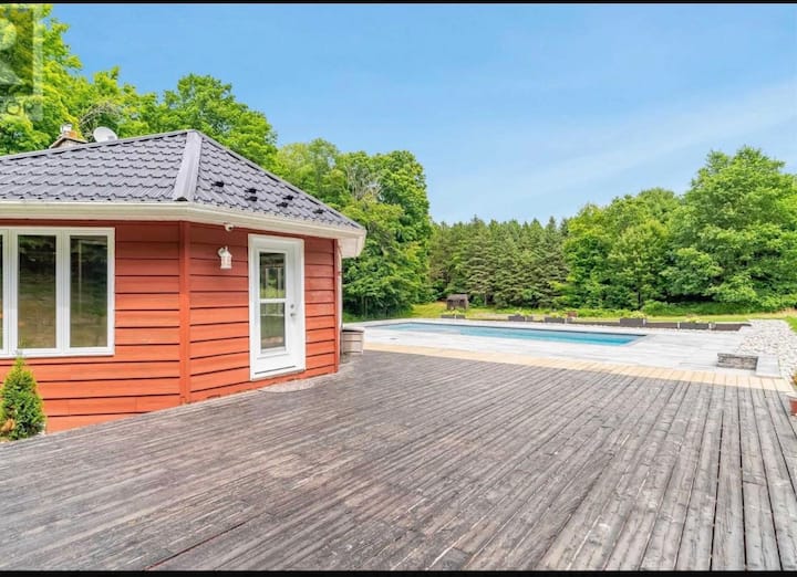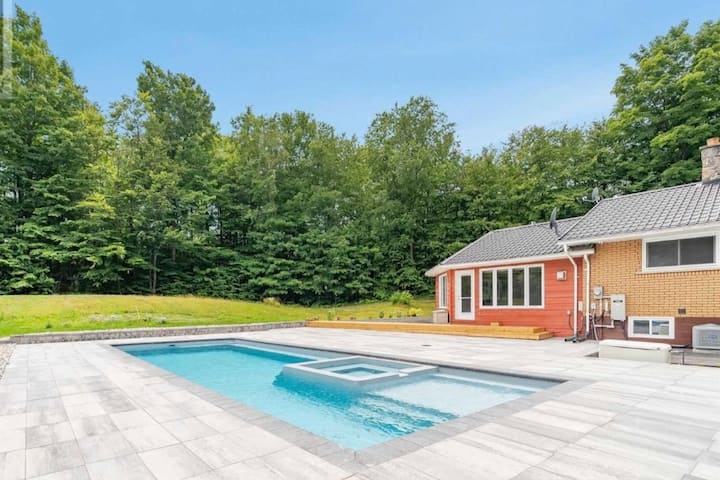 หลบหนีไปยังสวรรค์ส่วนตัวของคุณเองด้วยเตียง 4 หลังที่น่าทึ่ง 3 BA (เตียงควีนไซส์ 5 หลังและเตียงพับ 4 หลัง) บนพื้นที่เขียวชอุ่ม 8 เอเคอร์ เหมาะสำหรับครอบครัวขนาดใหญ่หรือกลุ่มเพื่อนที่ต้องการความสนุกสนานและความเงียบสงบ ผ่อนคลายในอ่างน้ำร้อนใหม่ล่าสุดของเราลงเล่นน้ำในสระว่ายน้ำบนพื้นดินหรือสำรวจเส้นทางเดินส่วนตัว เพลิดเพลินกับเตียงควีนไซส์อบอุ่น 5 เตียงห้องนั่งเล่นและห้องรับประทานอาหารแบบเปิดโล่งโต๊ะฟุตบอลห้องโต๊ะพูลที่กว้างขวางและปิงปอง จองตอนนี้เพื่อประสบการณ์ที่น่าจดจำ!