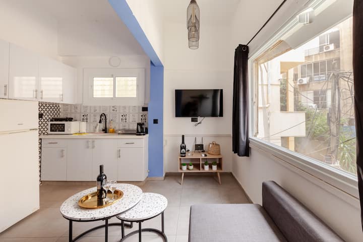 อพาร์ทเมนท์สีฟ้ากว้างขวางใจกลางเทลอาวีฟและ 2 นาทีถึงซีเอ