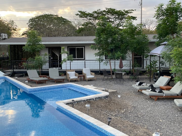 เรียนนักเดินทางเราให้บริการเคบินที่มีสระว่ายน้ำใน Quedate Aqui 1, 5 นาทีจาก Playas Nacascolo และ Virador ใน Four Seasons 15 นาทีจากสนามบินไลบีเรีย, Playas de Coco, Playa Ocotal, Playa Hermosa, Playa Panama และ 20 นาทีจาก Playa Cabuyal (Virgin Beach ที่มีเบรกเกอร์พื้นเมืองเพียงแห่งเดียว) เราเป็นทางเข้า Ritz Carlton 5 นาทีที่ประตูของ Peninsula Papagayo. Iguanita Canopy