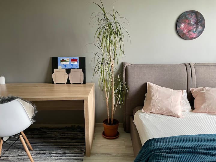 อพาร์ทเมนท์สีเทาอ่อนใกล้ทาลลินน์และเรือข้ามฟากมูกา