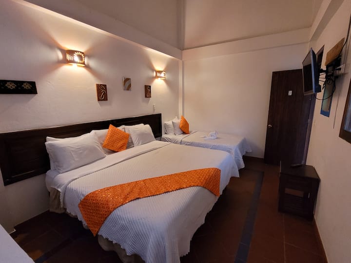 ห้องพักสามคนในโรงแรมที่มีทำเลดีเยี่ยม