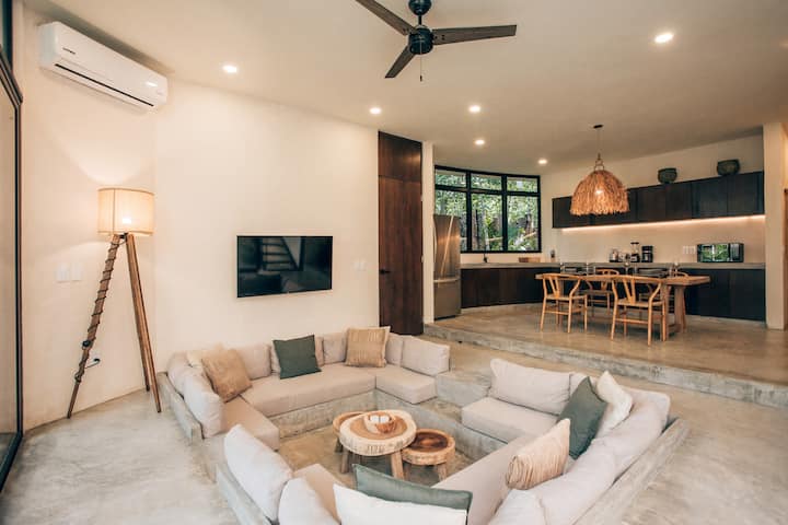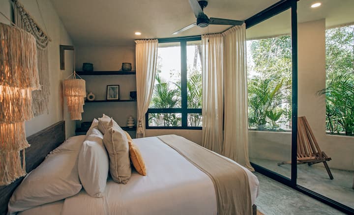 - ห้องนอนใหญ่ (เตียงคิงไซส์) พร้อมห้องน้ำส่วนตัวและเครื่องปรับอากาศ มีสมาร์ททีวีพร้อมเน็ตฟลิกซ์และแอพเพื่อเพลิดเพลินกับภาพยนตร์หลังจากไปชายหาดมาทั้งวันหรือสำรวจซากปรักหักพังของชาวมายาที่อยู่ใกล้เคียง