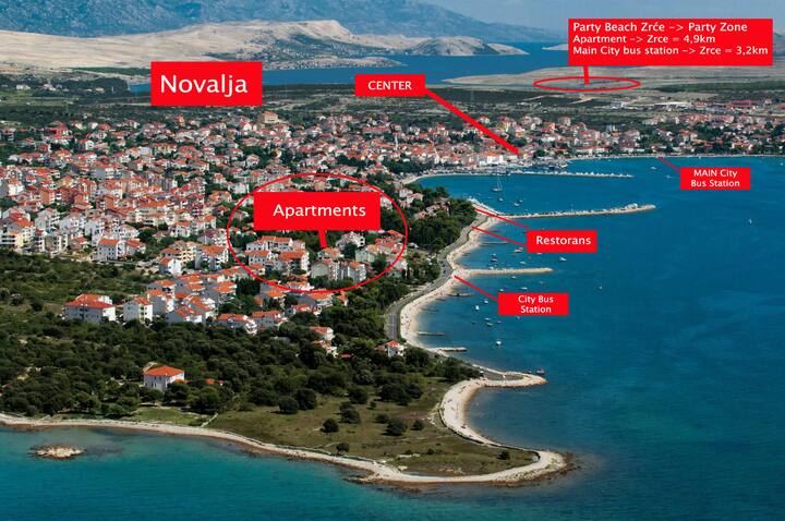 อพาร์ทเมนท์ในโนวาลยาสำหรับ 2-3 คน | วิวทะเล