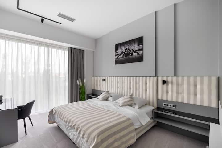 เตียงคิงไซส์หรู Airbnb พร้อมเครื่องปรับอากาศในคาร์ลิน! 402