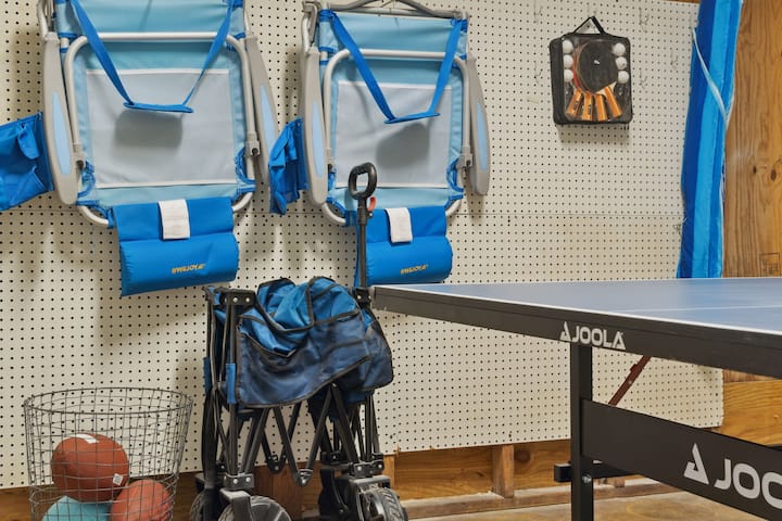 - โรงรถพร้อมปิงปองเครื่องอาเขตและสิ่งของจำเป็นสำหรับชายหาด!
