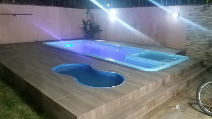 สถานที่ที่มีเสน่ห์พร้อมสระว่ายน้ำและเครื่องปรับอากาศ