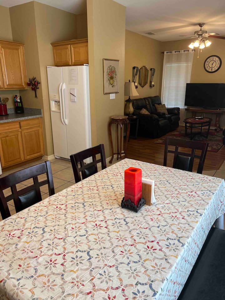 บ้านของเรามีห้องครัว/ห้องรับประทานอาหาร/ห้องนั่งเล่นขนาดใหญ่ที่มีห้องครัวพร้อมพื้นที่มากมายในการเตรียมอาหาร ห้องครัวมีอุปกรณ์ครบครันพร้อมเครื่องใช้ทั้งหมดที่จำเป็นในการเตรียมและเสิร์ฟอาหาร ชาและกาแฟพร้อมอุปกรณ์ครบครันรอคุณอยู่ในตู้ นี่คือบ้านของเราที่ห่างไกลจากบ้านของเราและเรายินดีที่จะแบ่งปันมันกับคุณ ห้องนั่งเล่นมีทีวีขนาด 54 นิ้วพร้อมช่องดาวเทียม มีเกมกระดานหลากหลายให้บริการเช่นแอร์ฮอกกี้ชุดโป๊กเกอร์ความเสี่ยงต้องห้าม Scattergories หมากฮอสหมากรุกฯลฯ ห้องนอน #1 มีเตียงควีนไซส์และทีวีขนาด 27 นิ้วที่มีช่องดาวเทียม ห้องนอน #2 มีเตียงขนาดคิงไซส์พร้อมโต๊ะข้างเตียงสองตัวห้องนอน #3 มีเตียงขนาดคิงไซส์พร้อมที่วางของสองคืนเช่นกันและทีวีขนาด 50 นิ้วพร้อมช่องท้องถิ่น มี Wi-Fi ฟรีเป็นผู้ให้บริการ บ้านหลังนี้มีห้องน้ำเต็มรูปแบบ 2 ห้องพร้อมอ่างล้างหน้าในอ่างอาบน้ำหลัก นอกจากนี้ยังมีเครื่องซักผ้าและเครื่องอบผ้าขนาดใหญ่ในห้องซักรีด มีห้องพักขนาดใหญ่ที่มีหลังคาและมีสกรีนในลานด้านหลังเพื่อเพลิดเพลินกับกาแฟยามเช้าหรือค็อกเทลยามเย็นของคุณ ตั้งอยู่บนลานจอดรถขนาดใหญ่มีที่จอดรถนอกถนนเพียงพอสำหรับยานพาหนะ/เรือหลายลำ ที่พักมีรั้วล้อมรอบด้วยต้นไม้เพื่อความเป็นส่วนตัวและเพลิดเพลินกับธรรมชาติ เป็นย่านที่เงียบสงบมากคุณจะตื่นขึ้นมาทุกเช้าด้วยเสียงธรรมชาติ สัญญาณเตือนไฟไหม้และขโมยที่ตรวจสอบโดย CWS