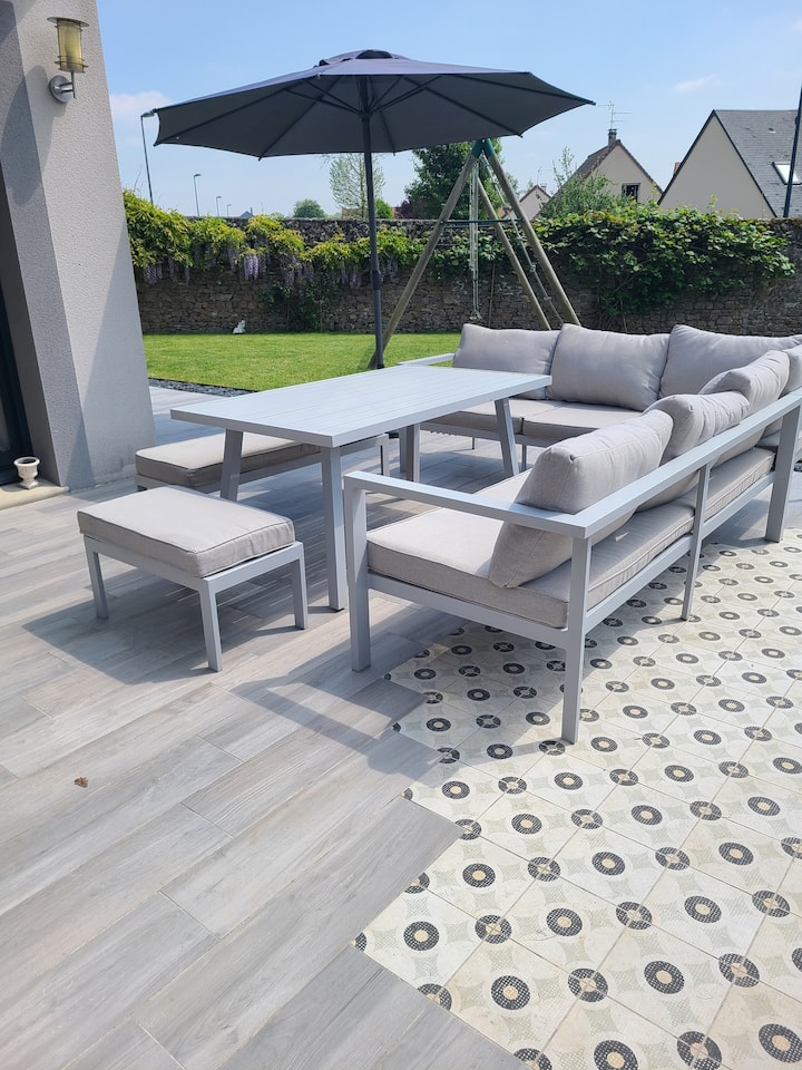 ระเบียงขนาด 70 ตร.ม. หันหน้าไปทางตะวันตกเฉียงใต้ (คุณจะได้รับแสงแดดตั้งแต่เที่ยงถึง 20.00 น.) ปูไม้และมีเฟอร์นิเจอร์ครบครัน เตียงอาบแดด (5 เตียงนอกเหนือจากเก้าอี้เลานจ์) โต๊ะรับประทานอาหารสำหรับ 8 ท่าน ร่ม และเตาแก๊ส