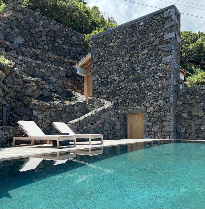 - บ้านพักตากอากาศที่มีสระว่ายน้ำใน Ilha do Pico