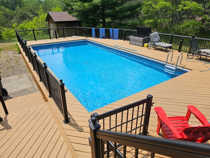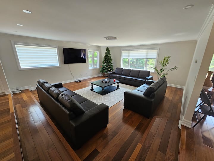 หลบหนีไปยังคอทเทจ 5 ห้องนอนในโมโนออนแทรีโอตั้งอยู่บนพื้นที่กว้างขวาง 30 เอเคอร์ ผ่อนคลายในพื้นที่นั่งเล่นกว้างขวาง 2 แห่งที่มีบาร์ในตัว เลานจ์ริมสระว่ายน้ำหรือบนศาลาของดาดฟ้าที่มองเห็นสวนหลังบ้านอันกว้างใหญ่ ผู้ที่ชื่นชอบธรรมชาติจะชอบจุดเชื่อมต่อป่าที่เข้าถึงได้ง่ายเหมาะสำหรับการสำรวจ สถานที่พักผ่อนในถิ่นทุรกันดารอันเงียบสงบที่ซึ่งความสะดวกสบายมาบรรจบกับธรรมชาติพร้อมต้อนรับคุณแล้ว