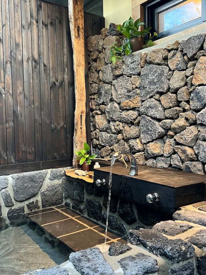 #สเตยูอูลอาคาร A / อาเวลทั้งหลัง / เพนชั่นทั้งหลังในเจจู / บ้านหินส่วนตัวในเจจู / อ่างจากุซซี่กลางแจ้ง / น้ำร้อนฟรี