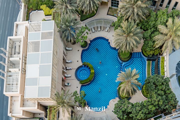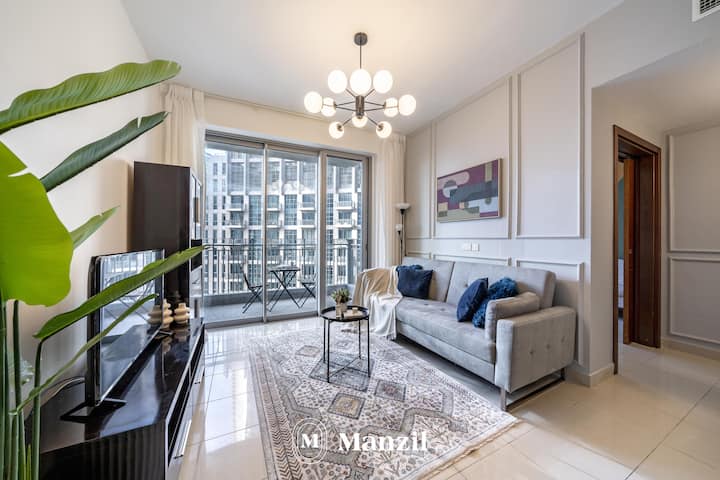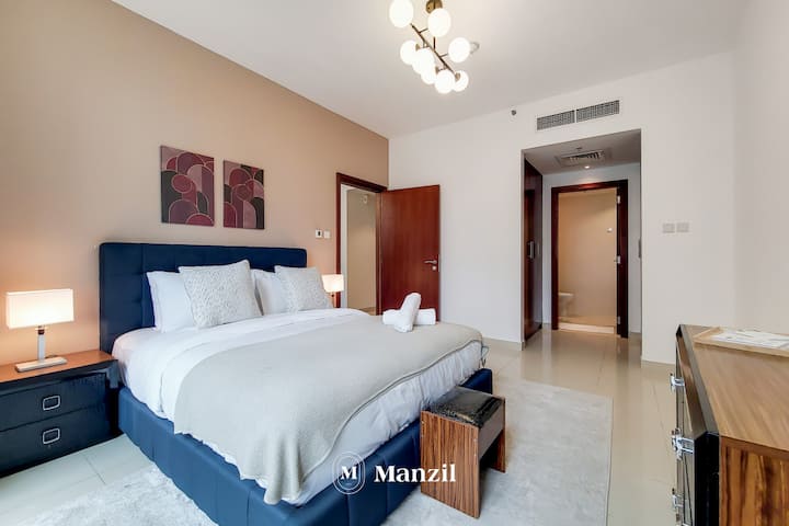 Manzil - อพาร์ทเมนท์ 1 ห้องนอนที่อบอุ่นพร้อมวิวเส้นขอบฟ้าของเมืองและ Burj