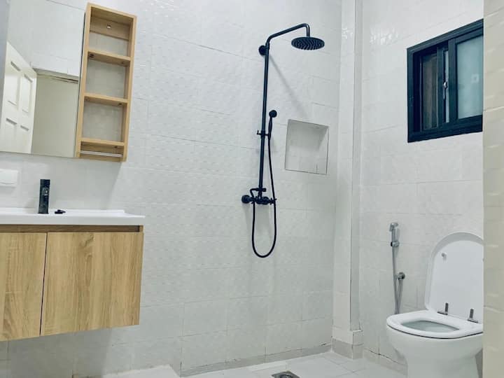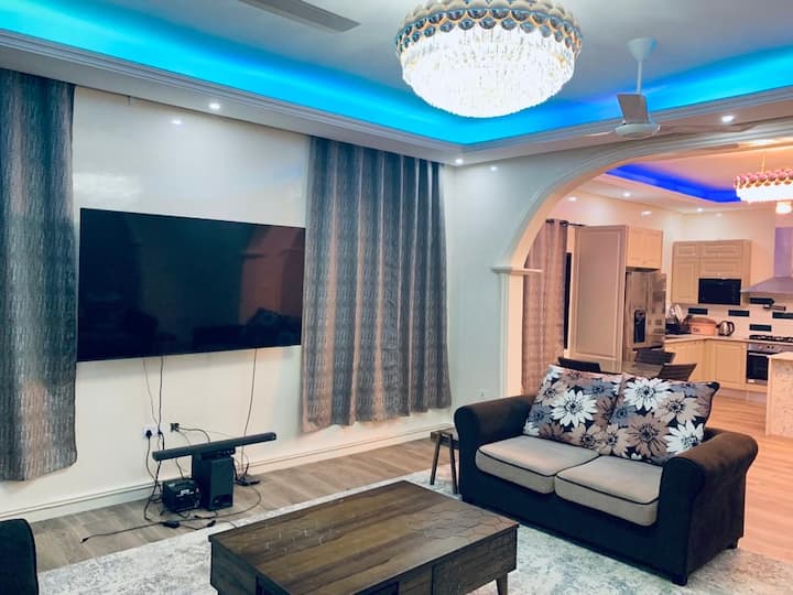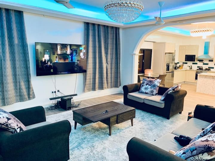 3 ห้องนอนพร้อมห้องน้ำในตัวและห้องน้ำครึ่งหนึ่งในบ้าน สองในสามห้องนอนมีเครื่องปรับอากาศของตัวเองพร้อมกับหนึ่งในห้องนั่งเล่นและอีกหนึ่งห้องในห้องครัว ห้องนอนสุดท้ายอยู่ด้านหลังบ้านและไม่มีเครื่องปรับอากาศแต่มีพัดลม ที่พักยังมีห้องนั่งเล่นพร้อมทีวีจอแบนขนาด 75 นิ้วพร้อมช่องท้องถิ่นและบริการสตรีมมิ่งห้องรับประทานอาหาร/ห้องครัวและห้องครัวที่สอง บ้านของเรามีระเบียงหน้าบ้านขนาดใหญ่พื้นที่สำหรับรถ 2 คันภายในบริเวณที่พักของคุณเองและมีรั้วล้อมรอบ เรามีอาคารหลังที่ 2 ของที่พักซึ่งมีสมาชิกในครอบครัว 2 คนอาศัยอยู่ (ซึ่งจัดการบ้าน) พร้อมกับเจ้าหน้าที่รักษาความปลอดภัยตลอด 24 ชั่วโมงของเรา สระว่ายน้ำเงียบสงบอยู่ด้านหลังด้วยผนังรองเพื่อความเป็นส่วนตัวพร้อมประตูทางเข้าแยกต่างหากที่สามารถล็อคได้จากด้านใน นอกจากนี้ยังสามารถเข้าถึงได้จากประตูหลังบ้าน มีฝักบัวอาบน้ำด้านนอกสำหรับบริเวณสระเช่นกัน
