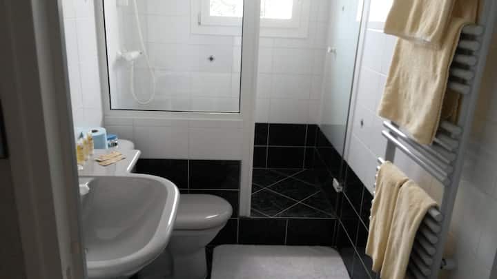 ห้องพักพร้อมห้องน้ำส่วนตัวในบ้านที่ปรับปรุงใหม่