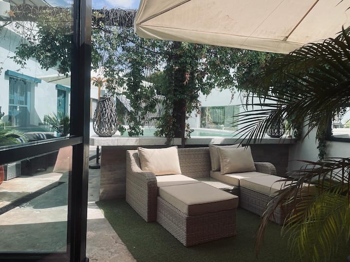 นี่เป็นหนึ่งในที่พักไม่กี่แห่งของย่านนี้ที่มีสระว่ายน้ำ
