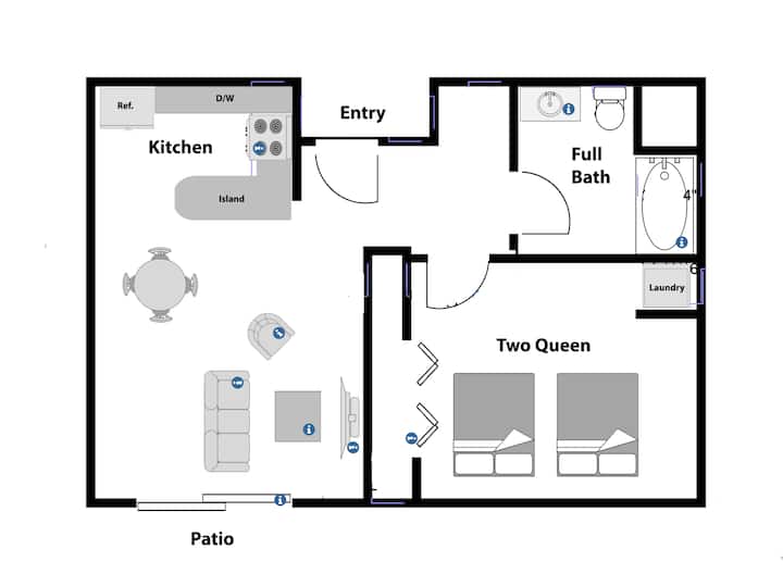 สไตล์ ห้องครัวหรูหรา กว้างขวาง เตียงควีนไซส์ 2 เตียง