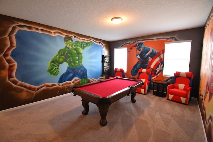 วิลล่าหรูใหม่เอี่ยมสำหรับ 24 คนพร้อมสระว่ายน้ำส่วนตัวและเกมทางน้ำ ในบ้านมีตัวการ์ตูน 3 มิติที่น่าตื่นตาตื่นใจ เก้าอี้นวดหรูในห้องนอนใหญ่ เตียงสองชั้นพร้อมสไลเดอร์ในห้องเด็ก ห้องเล่นเกมที่มีเกมที่เด็ก ๆ ชื่นชอบ วิลล่าตั้งอยู่ในคอมเพล็กซ์เวอรันดาพาล์มส์ใจกลางคิสซิมมี ใกล้ทุกสิ่งที่คุณและครอบครัวต้องการสำหรับการพักผ่อนที่ยอดเยี่ยมเช่นดิสนีย์วอลมาร์ทร้านขายยาร้านอาหารร้านค้าและอื่นๆ สามารถเพิ่มเตาย่างบาร์บีคิวในการจองของคุณได้