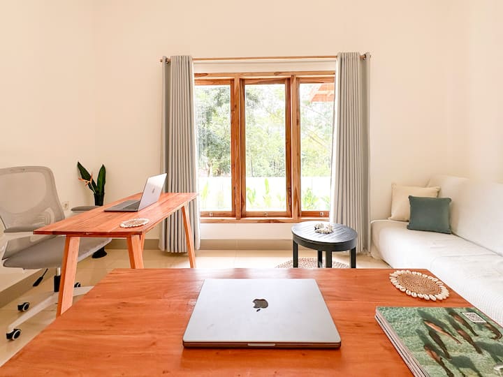 วิลล่าส่วนตัวพร้อมสระว่ายน้ำ สำนักงาน เตียงคิงไซส์ และอินเทอร์เน็ต 100Mbps