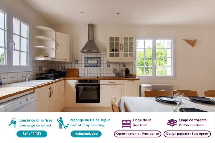 บ้านที่มีสิ่งอำนวยความสะดวกครบครันแห่งนี้ตั้งอยู่ติดกับทะเลต้อนรับคุณในสภาพแวดล้อมที่เป็นธรรมชาติและได้รับการอนุรักษ์ไว้! บ้านที่มีเสน่ห์แห่งนี้ล้อมรอบด้วยป่าขนาดใหญ่ที่เงียบสงบรอให้คุณใช้เวลากับครอบครัวของคุณ เส้นทางเลียบชายฝั่งและทัวร์จักรยานข้ามชายฝั่งและสามารถนำคุณไปยังเกาะ Noirmoutier ที่สวยงามของ Vendée < br >< br > บ้านขนาด 90 ตารางเมตรแห่งนี้ตั้งอยู่ใน Notre-Dame-de-Monts มี 3 ห้องนอนและรองรับได้สูงสุด 6 คน