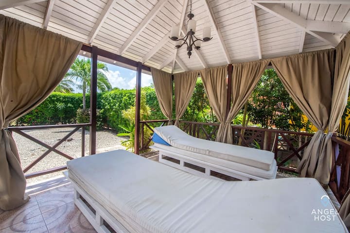 ที่พักสไตล์คาบาน่าใกล้ชายหาดพร้อมเลานจ์กลางแจ้ง