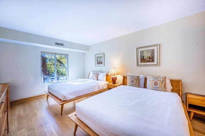 ห้องนอนหลักมีเตียงควีนไซส์ 2 เตียงและห้องน้ำในตัวส่วนห้องนอนที่ 2 มีเตียงแฝด 2 เตียงพร้อมห้องน้ำเต็มรูปแบบตรงข้ามห้องโถง ระเบียงส่วนตัวของคุณสร้างพื้นที่นั่งเล่นกลางแจ้งที่เหมาะสำหรับการดื่มกาแฟยามเช้าหรือการพักผ่อนยามเย็น