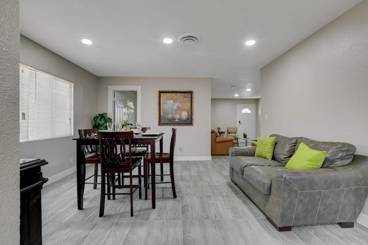 สัมผัสประสบการณ์การพักผ่อนที่สมบูรณ์แบบในบ้านพักขนาดใหญ่ชั้นเดียว 3 ห้องนอน 2 ห้องน้ำของเรา สำหรับผู้เข้าพักได้สูงสุด 10 คน เหมาะสำหรับการพักผ่อนหรือการเดินทางเพื่อธุรกิจ! เรามีทุกอย่างที่คุณต้องการ