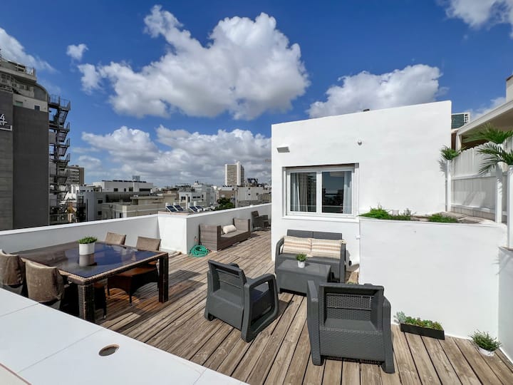 ดูเพล็กซ์บนดาดฟ้าที่มีวิวทะเล - สะดวกสบายและอยู่ใจกลางเมือง