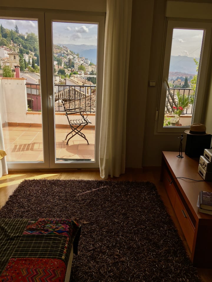เพนท์เฮาส์ใจกลางเมืองใกล้อัลฮัมบรา มีระเบียงและวิว!