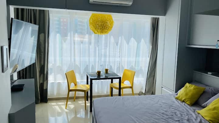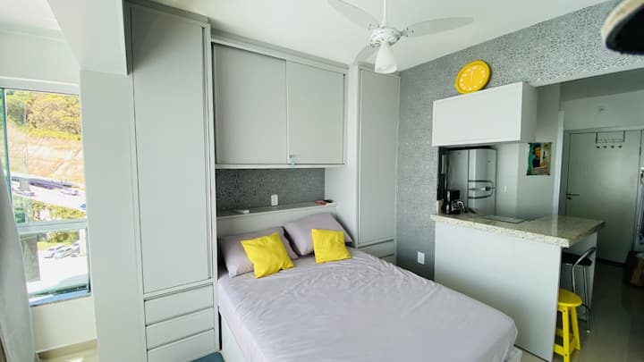 Kitnete เหมาะสำหรับคู่รักในอาคารที่ตั้งอยู่ด้านหน้าทะเลพร้อมสระว่ายน้ำพร้อมวิวพาโนรามาชีวภาพเจ้าหน้าที่อำนวยความสะดวก 24 ชั่วโมงและที่จอดรถรวมอยู่ในราคาที่จอดรถภายในอาคาร