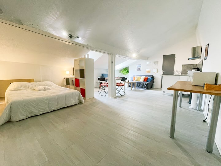ตั้งอยู่ในย่านประวัติศาสตร์ของ Grenoble ค้นพบสตูดิโอที่น่ารื่นรมย์ของเราที่ได้รับการปรับปรุงใหม่ทั้งหมดบนชั้นบนสุดใต้หลังคา