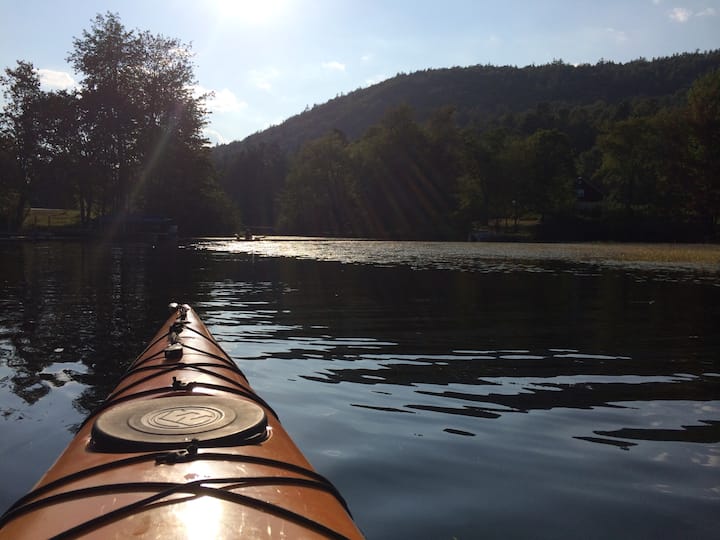 เพลิดเพลินกับวันฤดูร้อนบนเรือคายัคและกระดานพาย ตกปลาได้จากชายหาด หลุมก่อไฟส่วนตัวพร้อมเก้าอี้อาดิรอนแดกและวิวภูเขาและน้ำ ห้องนอน 2 ห้อง (1 ห้องมีเตียงควีนไซส์ 2 ห้องมีเตียงเต็มขนาด) ห้องครัวเล็กแต่มีอุปกรณ์ครบครัน ห้องน้ำพร้อมฝักบัวอาบน้ำ Wi-Fi และสมาร์ททีวีสำหรับสตรีมมิ่ง