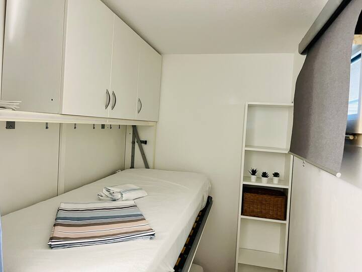 ที่พักที่ได้รับการปรับปรุงใหม่ในอาคารพักอาศัย มีเครื่องปรับอากาศและระเบียง
