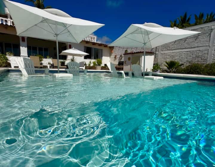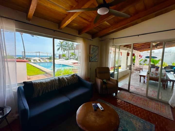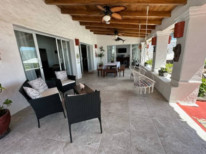 "ที่พักสไตล์เม็กซิกันแบบครอบครัวติดชายหาด" "วิลล่า" ที่พักสไตล์สเปนที่มีเอกลักษณ์และมีสีสัน มีทุกอย่างที่ต้องการ พร้อมเพดานสูง 16 ฟุตและคานเปิดโล่งในทุกห้อง มีเครื่องปรับอากาศใหม่ติดตั้งทั่วบ้านหลักและคาซิต้า โทรทัศน์ในห้องนั่งเล่นและในห้องนอนทุกห้อง ฉันยังได้ติดตั้งจุดเชื่อมต่อ Starlink สำหรับอินเทอร์เน็ตที่ดีที่สุดในเมืองด้วย! ที่พักขนาดใหญ่แห่งนี้ตั้งอยู่ท่ามกลางต้นมะพร้าวริมทะเล เปิดประตูหลังของคุณไปยังระเบียงกว้างขวาง 1 ใน 8 บนที่พักที่มีพื้นที่นั่งเล่นและห้องรับประทานอาหารกลางแจ้งแบบเปิดโล่ง และวิวที่น่าทึ่งของสวนหลังบ้านที่เขียวชอุ่มและได้รับการตกแต่งอย่างสวยงาม ซึ่งสิ้นสุดที่ชายหาดของคุณเองและมหาสมุทรแปซิฟิกที่น่าตื่นตาตื่นใจ ไม่ใช่แค่วิวที่สวยงาม แต่เป็นที่พักส่วนตัวริมทะเลที่แท้จริง และมีความแตกต่างในน้ำที่ใสกว่า ชายหาดทรายนุ่มที่ประตูหลัง ปะการังที่แท้จริง และลมทะเลที่มีแต่ที่พักริมทะเลเท่านั้นที่ให้ได้