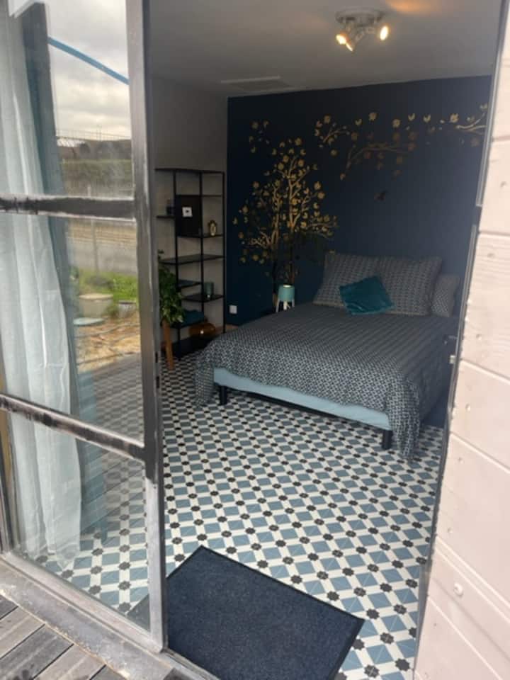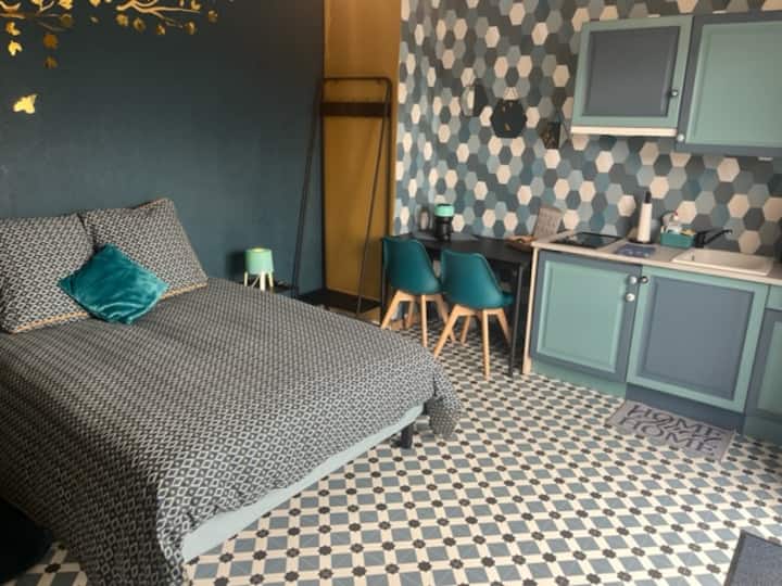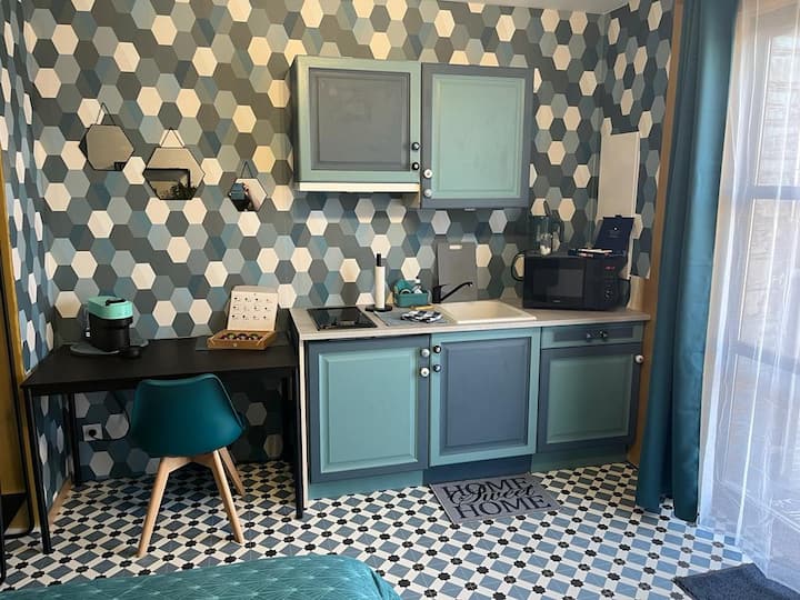 สตูดิโอที่อบอุ่นพร้อมระเบียงและที่จอดรถส่วนตัว