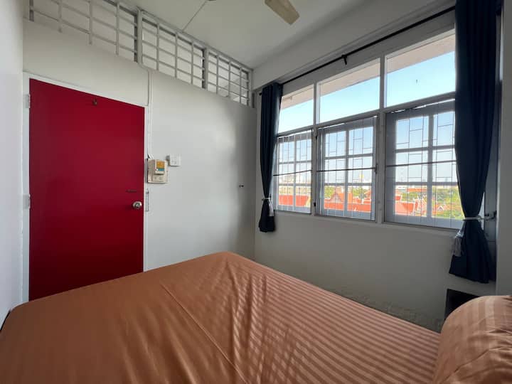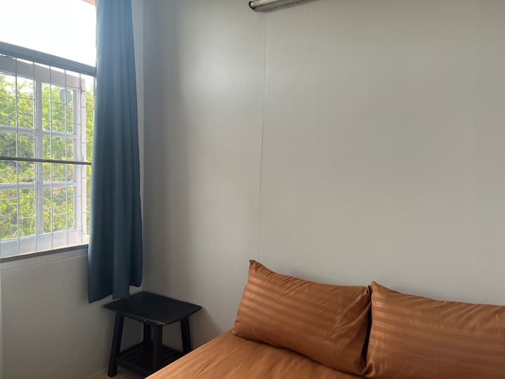 ห้องพักเตียงคู่พร้อมพัดลมและห้องน้ำรวม ราคาประหยัด