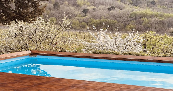 หลบไปพักผ่อนที่คอทเทจที่มีเสน่ห์ซึ่งความสง่างามแบบชนบทมาบรรจบกับความสะดวกสบายที่ทันสมัย ที่พักกว้างขวางแห่งนี้ (ชั้น 1) มีห้องครัวพร้อมเตาผิง ห้องนอนปรับอากาศ 3 ห้อง ห้องน้ำ และระเบียงส่วนตัวที่มีวิวไร่องุ่นที่สวยงาม
