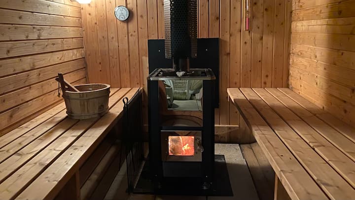 [สูงสุด 8 คน] วิลล่าส่วนตัวพร้อมซาวน่าฟืนและสระว่ายน้ำ (อนุญาตให้นำสัตว์เลี้ยงเข้าพัก)