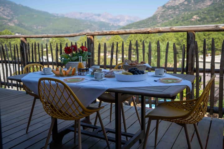 เราอาศัยอยู่ในคอร์ซิกามา 11 ปีแล้ว ในตอนแรกเราให้เช่าที่อยู่อาศัยหลักของเราในช่วงฤดูร้อน ประสบการณ์นี้ทำให้เราได้ต้อนรับผู้เข้าพักจากทุกสาขาอาชีพ เราจึงตัดสินใจที่จะผจญภัยต่อไปโดยอาคารสองหลังที่สะดวกสบายมากวิลล่าที่น่ารักที่ทุ่มเทให้กับการเช่าตามฤดูกาล เรารักคอร์ซิกาและยินดีที่จะพาผู้เข้าพักไปยังสถานที่ที่สวยงามและเงียบสงบ