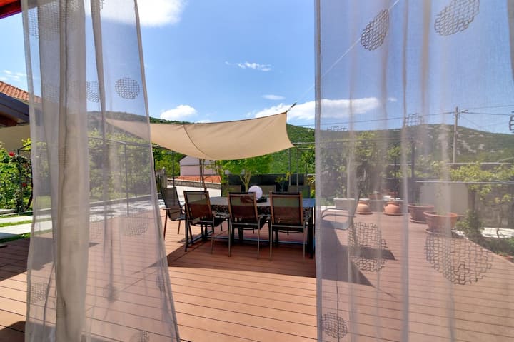 - บ้านพักตากอากาศที่มีที่นั่งกลางแจ้งใน Drivenik