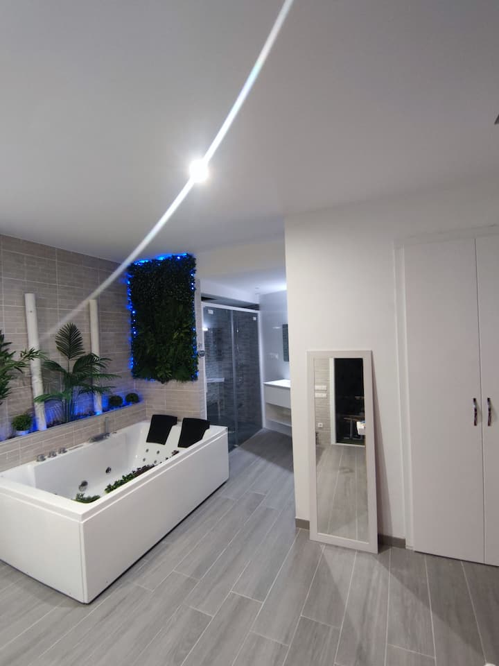 ห้องพักพร้อมจากุซซี่และห้องซาวน่าส่วนตัว