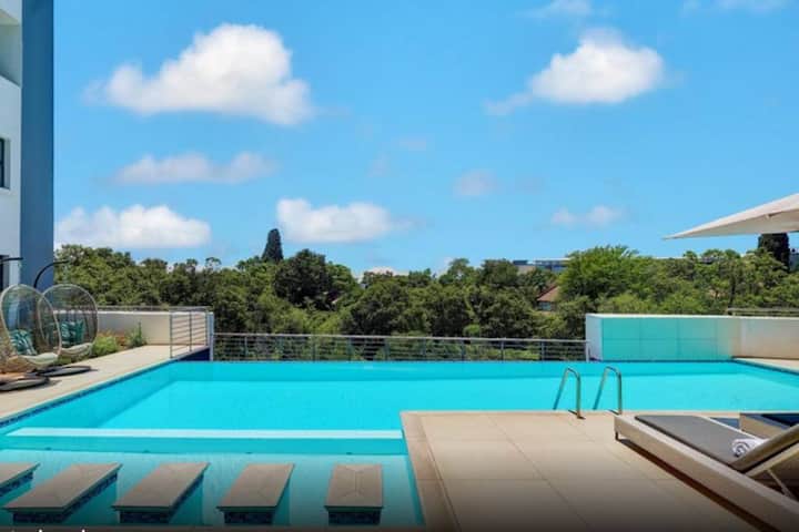 นี่เป็นหนึ่งในที่พักไม่กี่แห่งของย่านนี้ที่มีสระว่ายน้ำ