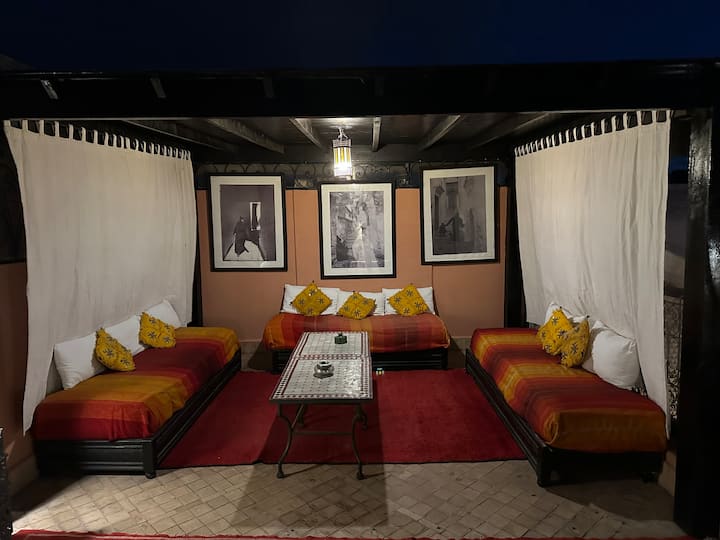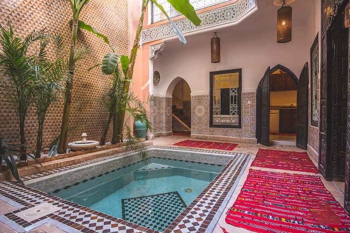 เรามีความยินดีที่จะต้อนรับคุณสู่ Riad ของเราซึ่งเราได้ตกแต่งด้วยความรักและความหลงใหลเพื่อให้คุณได้รับสวรรค์แห่งความสงบสุขที่แท้จริงในใจกลางเมืองสีแดง เราต้องการแบ่งปันความรักของเราที่มีต่อประเทศนี้กับผู้เข้าพักของเราและทำให้คุณค้นพบความสวยงามของมาร์ราเกชและสภาพแวดล้อม