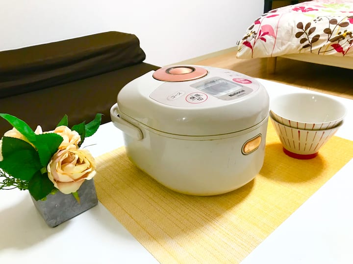 2) เดิน 9 นาทีถึงสถานีเท็นจิน 6 นาทีถึงคาแนล ห้องส่วนตัวสำหรับ 4 คน มี Wi-Fi เครื่องซักผ้าและเครื่องอบผ้า