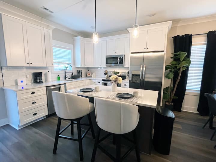 ชั้นหลักแนวคิดแบบเปิดไหลอย่างสมบูรณ์แบบระหว่างห้องครัวพื้นที่รับประทานอาหารและห้องนั่งเล่นเพื่อให้คุณสามารถทำอาหารหรือรับประทานอาหารที่น่าตื่นตาตื่นใจที่สุดจากหนึ่งในร้านอาหารที่ได้รับคะแนนสูงของชาร์ล็อตต์ทั้งหมดในขณะที่พักด้วยกัน