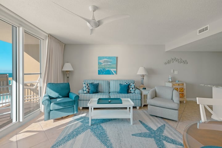 ระเบียงส่วนตัวของคอนโดมิเนียมแห่งนี้มีวิวอ่าวที่งดงามของชายหาดและน้ำทะเลสีเขียวมรกตของอ่าวเม็กซิโก ความงามตามธรรมชาติของชายฝั่งอ่าวสามารถชื่นชมได้อย่างเต็มที่จากจุดชมวิวนี้มีวิวยาวไปทางทิศตะวันออกและทิศตะวันตกตามแนวชายฝั่ง ระเบียงเป็นสถานที่ที่สมบูรณ์แบบสำหรับการพักผ่อนและชมพระอาทิตย์ตกที่สวยงามหรือเพลิดเพลินกับกาแฟยามเช้าของคุณในขณะที่ดูพระอาทิตย์ขึ้นเพื่อเริ่มต้นวันใหม่ของการพักผ่อน วิวน่าทึ่งอย่างแท้จริงและเป็นสิ่งที่ไม่ควรพลาดสำหรับผู้เข้าพักทุกคน