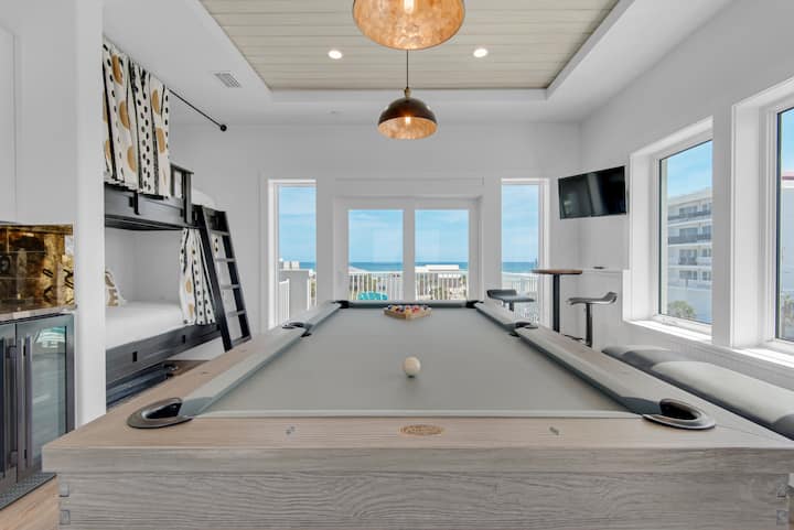 * ห้องเล่นเกมพร้อมโต๊ะพูลและเตียงสองชั้นในตัว