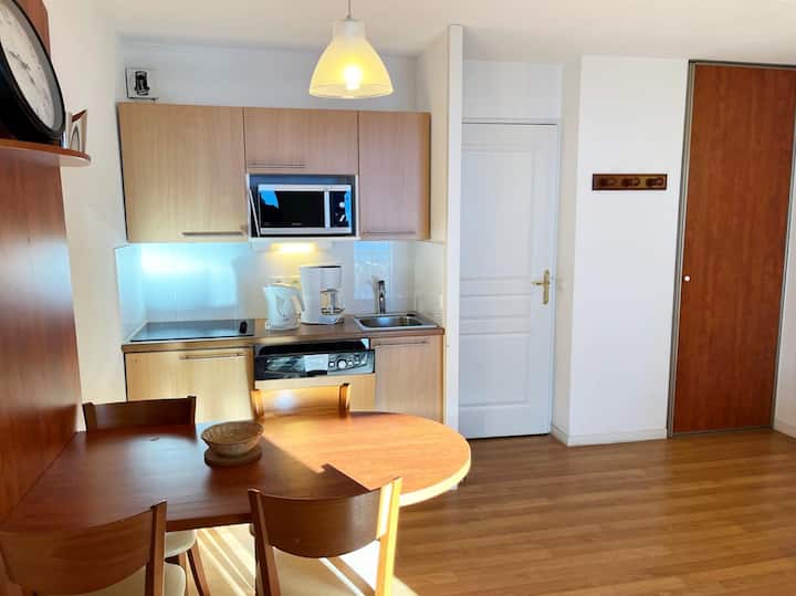 - พื้นที่ครัวพร้อมเตาเซรามิก 4 หัวตู้เย็นไมโครเวฟ/เตาปิ้งย่างเครื่องล้างจานกาต้มน้ำและเครื่องชงกาแฟไฟฟ้า